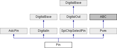 You can choose whether a pin should be a digital input, digital output, analog input, or soft-PWM output by setting the pin's mode property to one of the values in PinMode.