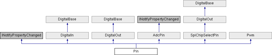 Pin implements INotifyPropertyChanged, and all the digital and analog value properties will also fire PropertyChanged messages.