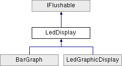 Implemented in Max7219, Pca9685, LedDriver, BarGraph, ChainableShiftRegisterOutput, RgbLed, Tm1650, Ht16k33, GraphicDisplay, Apa102, Is31fl3218, LedDisplayCollection, GpioLedDriver< TDigitalOutPin >, and PwmLedDriver< TPwm >.